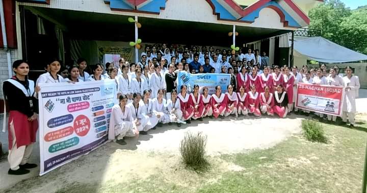 आगामी लोकसभा चुनावों के मद्देनजर नाचन विधानसभा में “मा भी पाणा वोट” स्वीप के माध्यम से मतदाता जागरूकता अभियान चलाया जा रहा है इस अभियान के तहत एसडीएम गोहर की अध्यक्षता में आज श्री साई स्कूल ऑफ नर्सिंग डडोह पाटा में स्वीप टीम द्वारा मतदाताओं को जागरूक किया गया। स्वीप टीम ने बीएससी नर्सिंग और जेएनएम प्रशिक्षुओं को मतदान का महत्व समझाया गया। दूनिया के सबसे बड़े लोकतांत्रिक देश मे मतदान की क्या उपयोगिता है यह विस्तार से समझाया । एसडीएम गोहर लक्ष्मण सिंह कनेट ने श्री साई स्कूल ऑफ नर्सिंग के प्रशिक्षुओं और स्टाफ सदस्यों को मतदान की शपथ भी दिलाई।