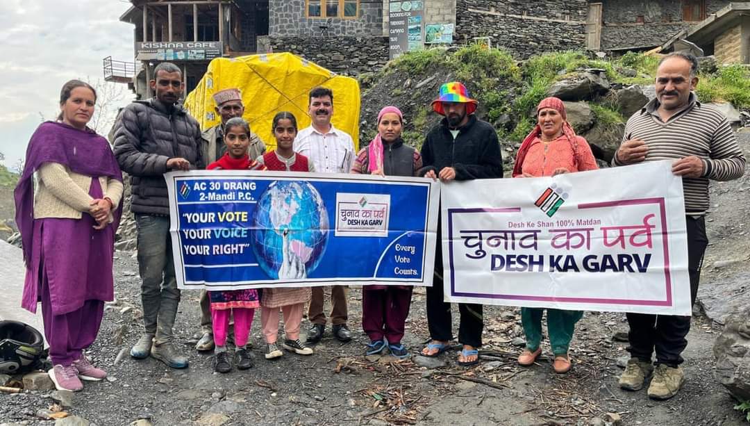 निर्वाचक रजिस्ट्रीकरण अधिकारी एवं एसडीएम पधर सुरजीत सिंह ने बताया कि 30 – द्रंग विधानसभा क्षेत्र में आगामी लोकसभा चुनाव 2024 में मतदाताओं की शत प्रतिशत भागीदारी सुनिश्चित करने हेतु मतदान जागरूकता अभियान चलाया जा रहा है सोमवार को ग्राम पंचायत शेगली के बागी मे मतदान प्रतिशत बढ़ाने ,अधिक से अधिक मतदाताओं को अपने मत के महत्व के बारे में जागरूक करने हेतु स्वीप टीम के तहत नोडल अधिकारी डॉ० कल्याण चंद मंडोत्ररा के अध्यक्षता में जागरूकता कार्यक्रम का आयोजन किया गया