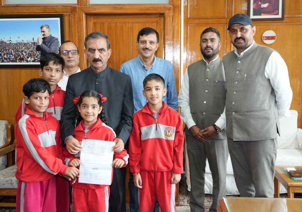 राजकीय प्राथमिक विद्यालय, ढली, शिमला के विद्यार्थियों ने आज यहां मुख्यमंत्री ठाकुर सुखविंद्र सिंह सुक्खू को अपनी बचत से मुख्यमंत्री राहत कोष के लिए 7000 रुपये का चेक भेंट किया।