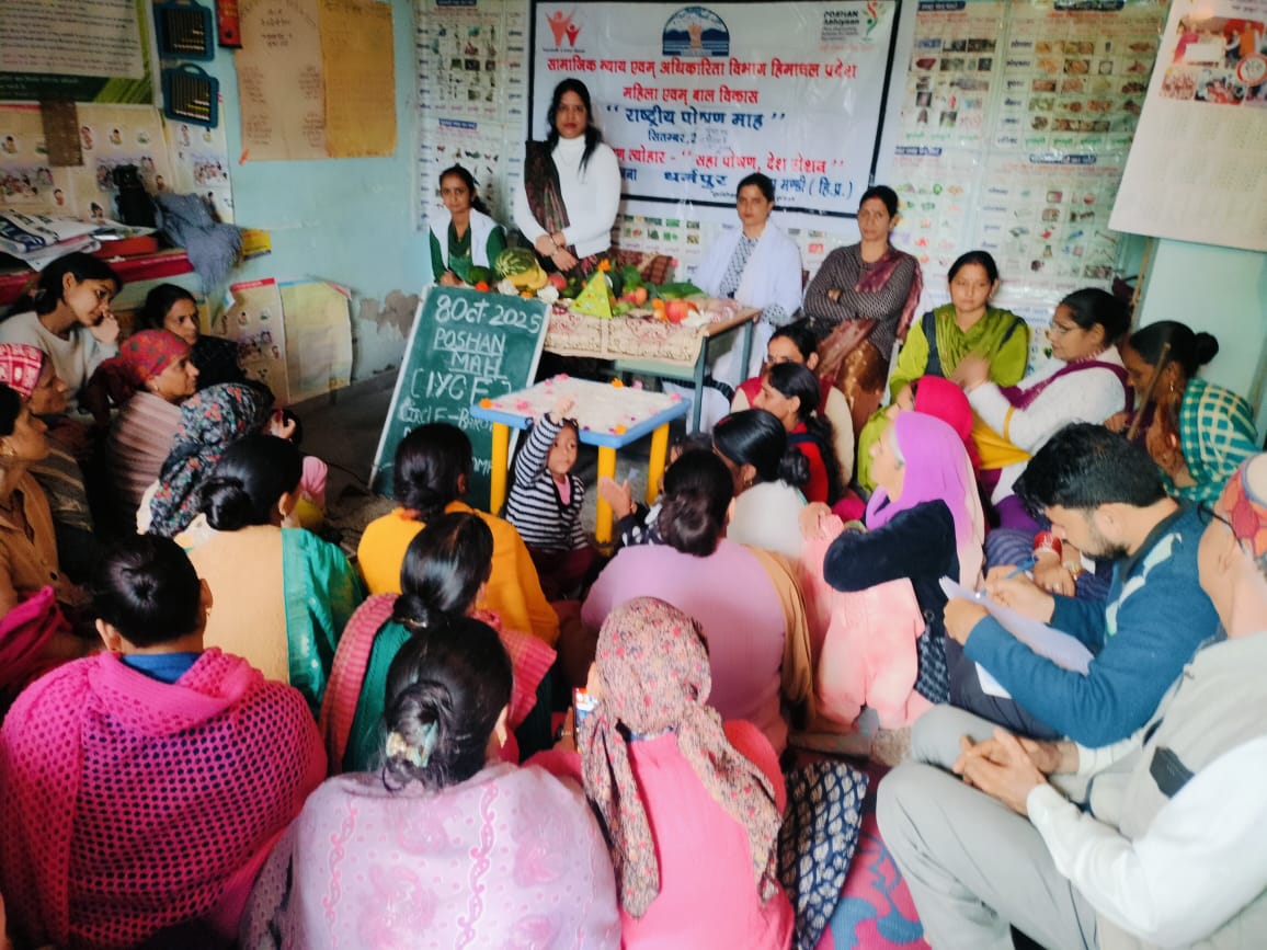 राष्ट्रीय पोषण माह के अवसर पर बाल विकास परियोजना धर्मपुर के अंतर्गत आंगनवाड़ी केंद्र डिडणु (सर्कल बरोटी) में बुधवार को शिशु एवं बाल आहार विषय पर जागरूकता शिविर का आयोजन किया गया।