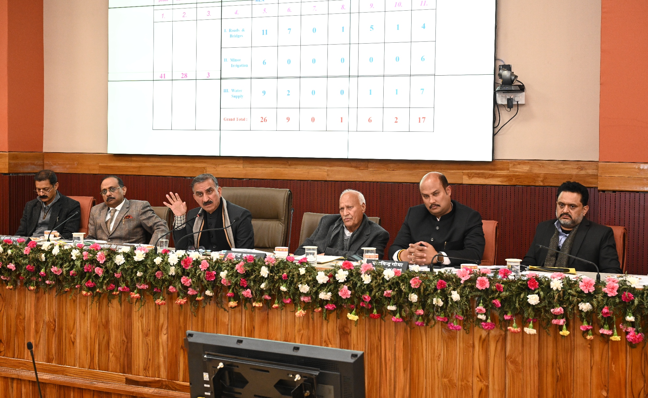 बैठक में कृषि मंत्री चौधरी चंद्र कुमार, आयुष मंत्री यादविंद्र गोमा, एचपीटीडीसी के अध्यक्ष रघुबीर सिंह बाली, उप-मुख्य सचेतक केवल सिंह पठानिया, मुख्य सचिव संजय गुप्ता, प्रधान सचिव वित्त देवेश कुमार तथा विभिन्न विभागों के प्रशासनिक सचिव एवं विभागाध्यक्ष उपस्थित थे।